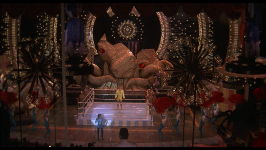Warum (außer natürlich aus den Budgetgründen) wird es nicht vernünftig weiterentwickelt, was sogar in diesem Film steckt. Die Relikte des Kalten Krieges (unsere Truppe) haben ausgedient und landen in einem Relikt des Kalten Krieges (einer New-York-Kulissen-Nachstellung der Sowjets), wo sie vom größten kalten Krieger seit McCarthy (dem Indianer-Iren) rausgeboxt werden. Steckt eine Angst dahinter? Eine Angst sein wahres Gesicht zu zeigen. Postmodernistischer Selbstreferenzialitätsulk kann nicht darüber hinwegtäuschen, dass man hofft, mit altem Wein in alten Schläuchen doch neu zu erscheinen oder anders ausgedrückt: hip, modern, immer noch zeitgemäß. Frisch und gegenwärtig durch den Retro-Chic des Anachronismus. Sind das letztlich nicht tautologische Spielchen? Die Ikonen negieren sich gegenseitig. Sie neutralisieren sich in ihrer Kraft, sie ziehen keine klaren Linien mehr. Keiner von ihnen spielt noch das, was er war, ja er repräsentiert es nicht mal mehr. Sie sind Faksimiles ihrer Selbst geworden. Auf halbem Schritt zum Videospiel, in das sie so inzwischen besser hineingehören. Animiert sehen sie nämlich nicht mehr so alt aus beim Versuch möglichst frisch beim alt aussehen jung zu wirken.